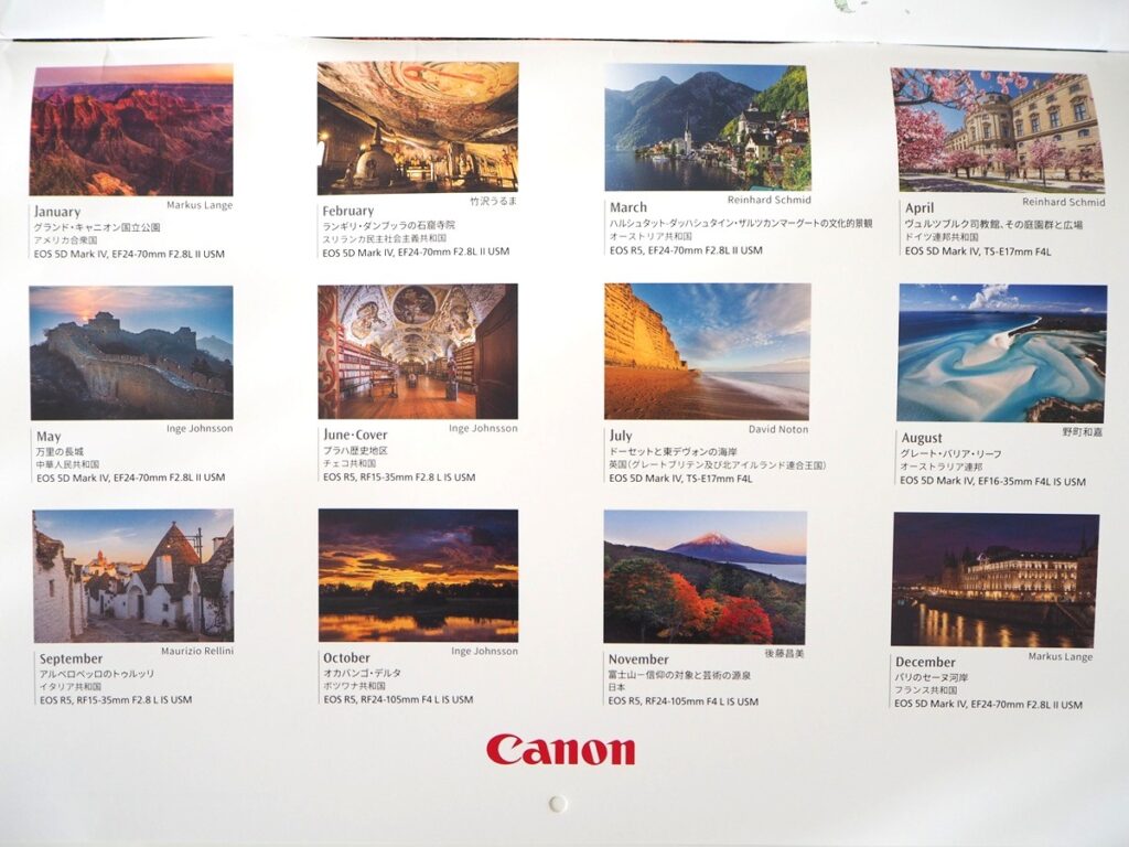 キヤノンの隠れ株主優待は世界遺産のカレンダーです。