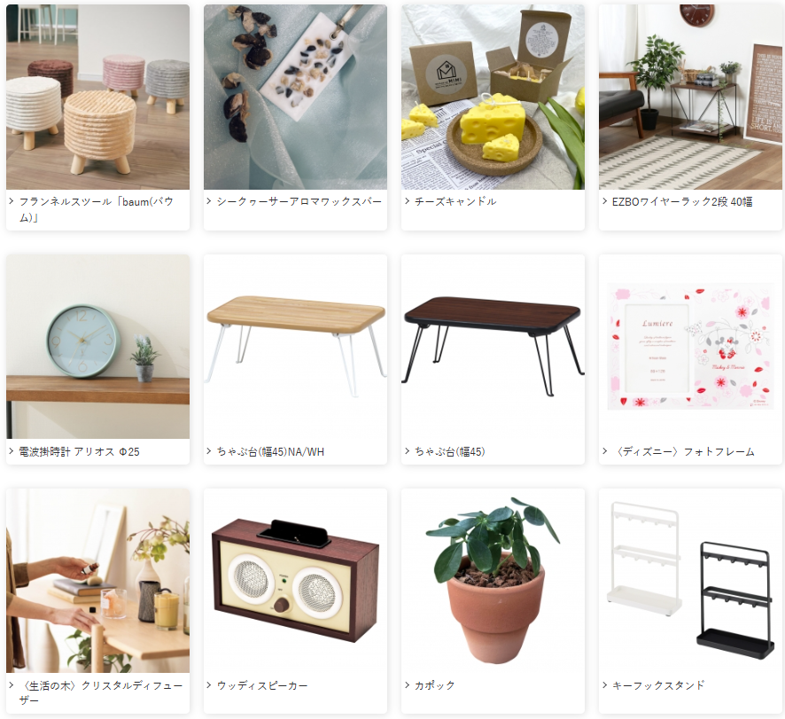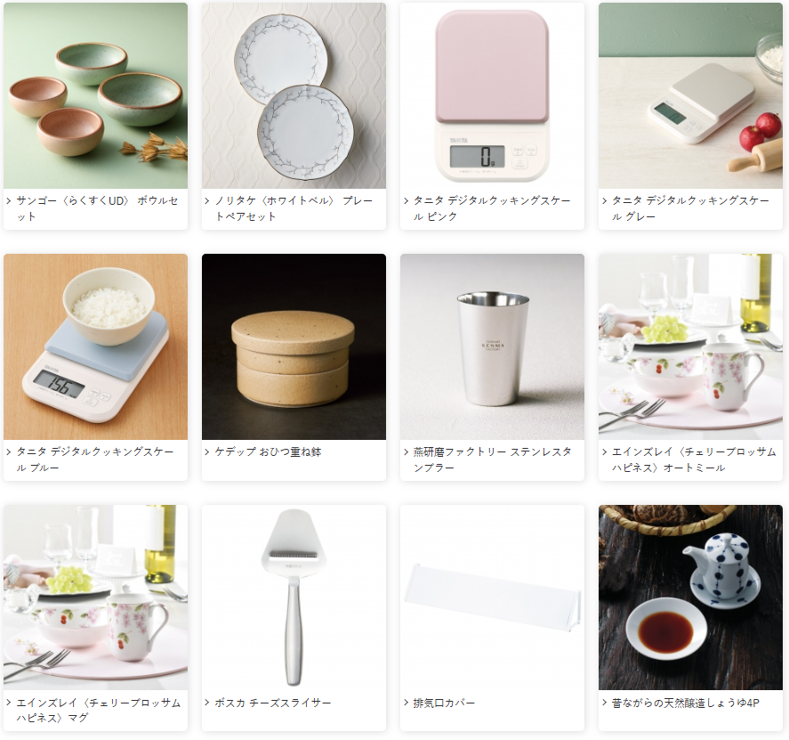 特にグルメや、ファッション、キッチンのジャンルに掲載されている商品が多いです。
