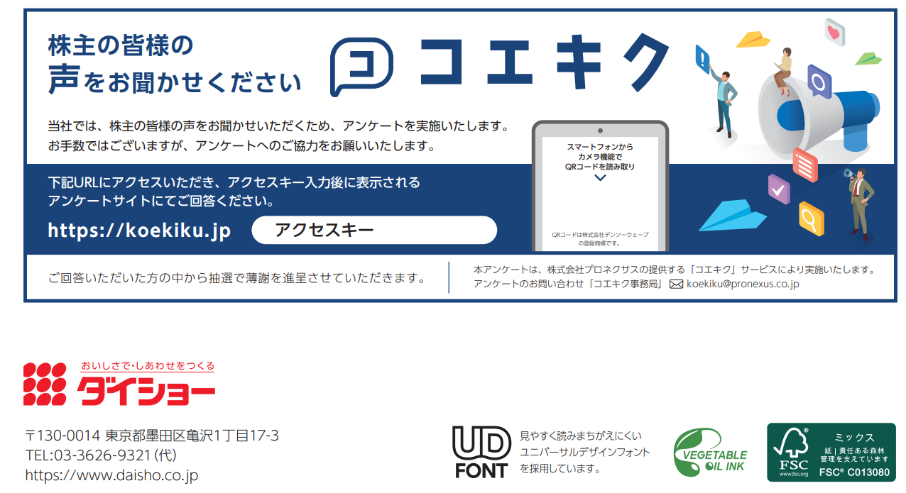 引用元:株式会社ダイショー IR情報 IRライブラリー 株主通信 2025年06月27日第59期株主通信