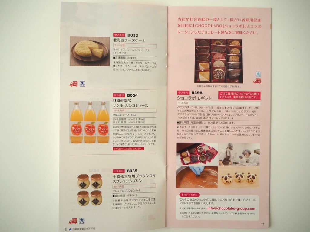 2025年9月度の株主優待カタログ(3年以上 3,000円相当)の内容です。