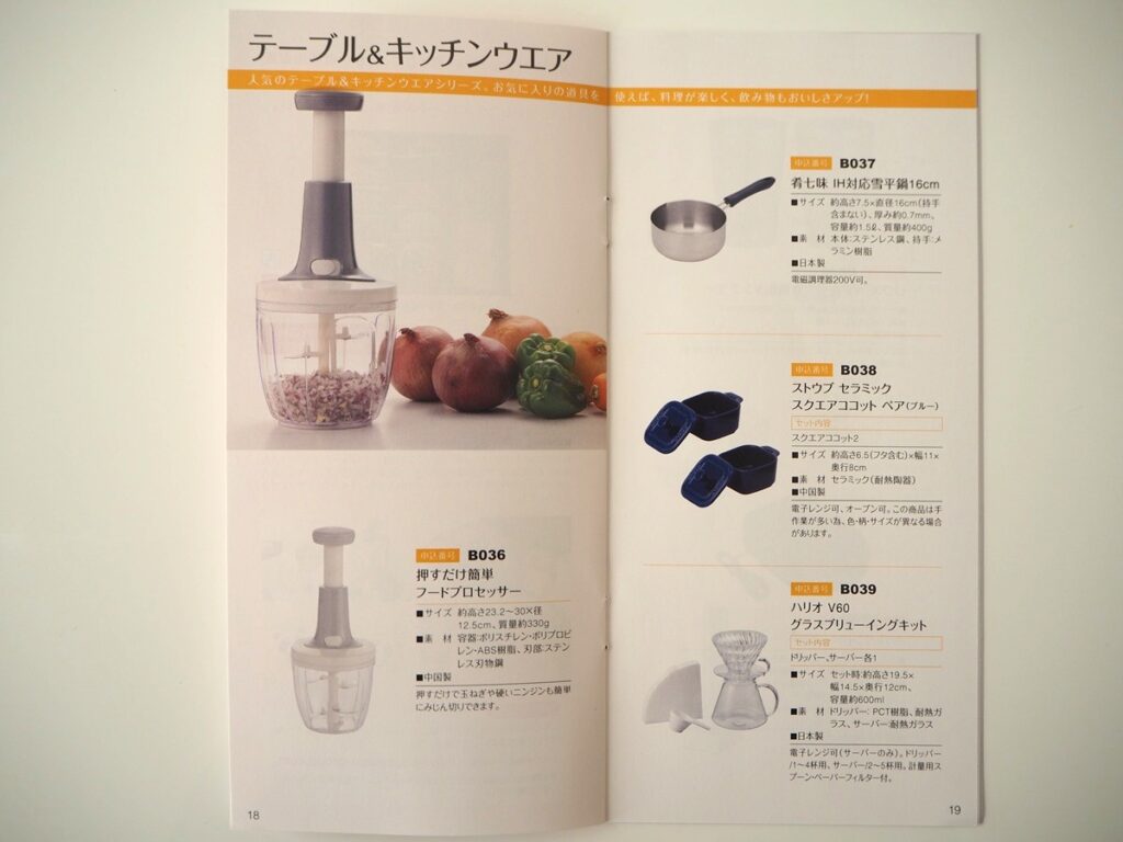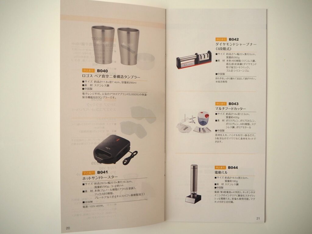優待カタログギフトの内容