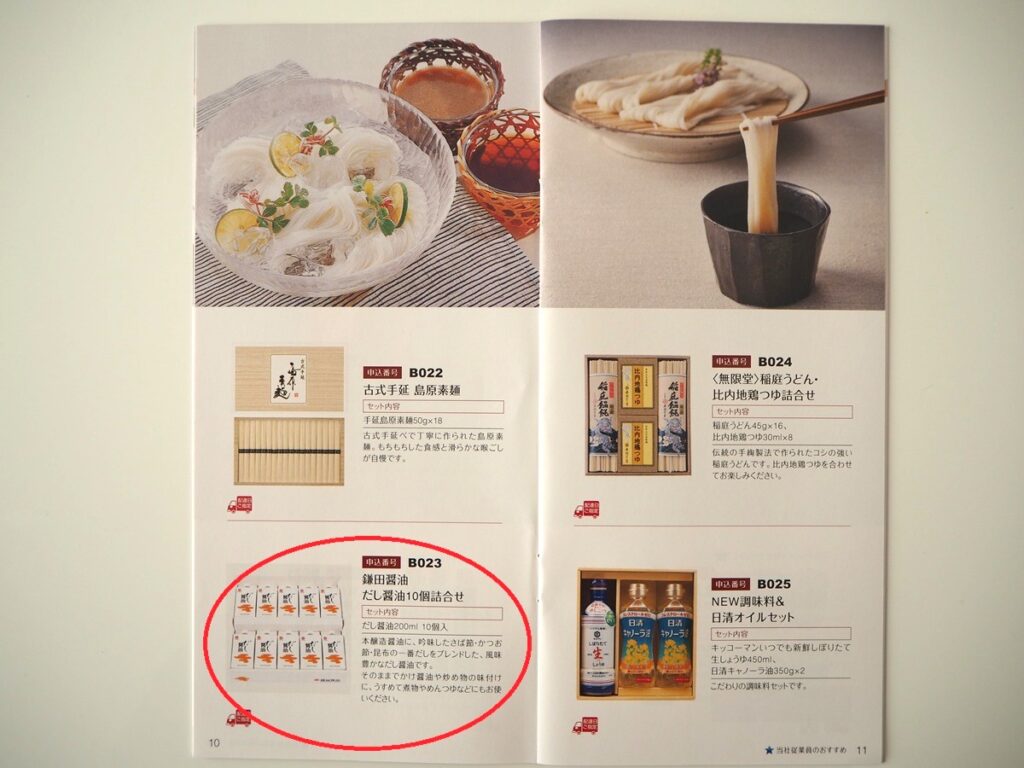 鎌田醤油のだし醬油が3,000円のカタログギフトにも掲載されるという嬉しいサプライズがありました。