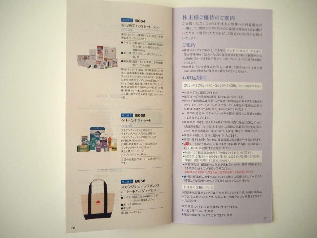 2025年9月権利分の株主優待は12月3日に届きました。