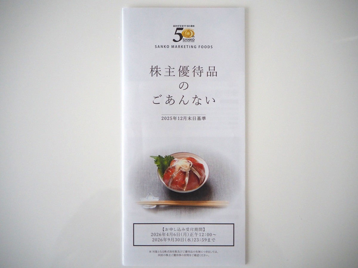 2025年12月権利分の株主優待の案内は3月30日に届きました。