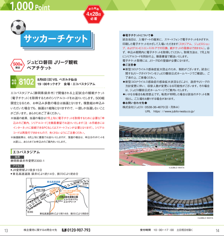 また、ジュビロ磐田のチケットや静岡ブルーレヴズのグッズなどは申し込み期限が決められていますので早めの申し込みが必要です。