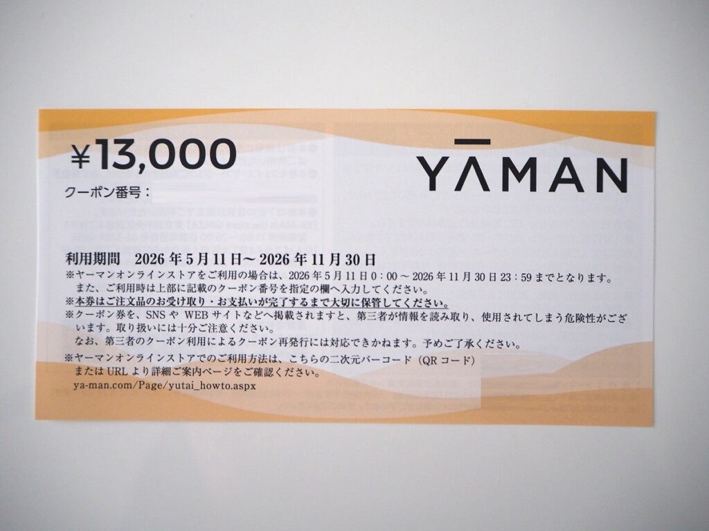 ヤーマンの株主優待はオンラインストア、直営店で使用できる割引券です。