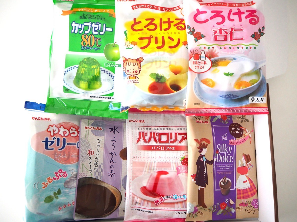 ゼリーやプリンなどが作れるセットが計7袋入っていました。